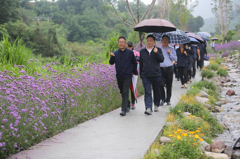 李總首先陪同考察團參觀溪地公園,并具體介紹了溪流景觀、花卉園林景觀的設計理念和實景打造情況。環書記對公園呈現的自然風貌和美麗風景給予了高度評價。